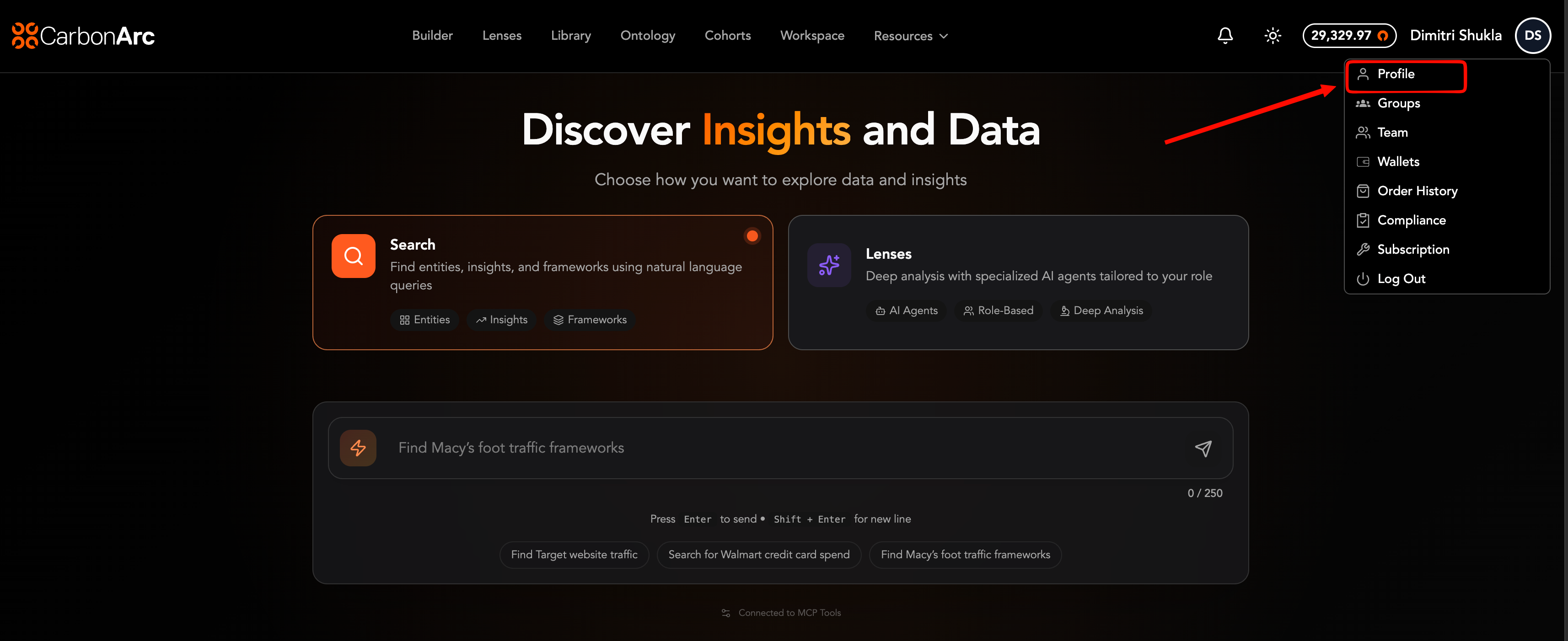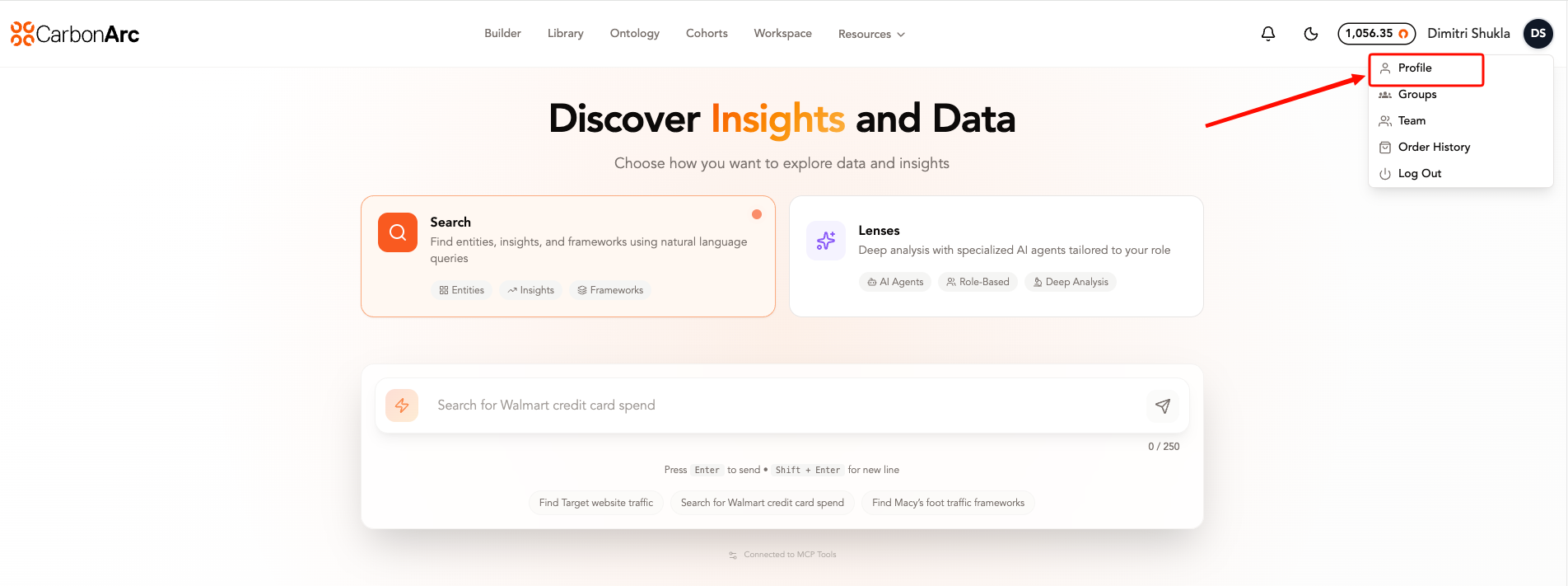 Click the profile drop down in the top right of the page to extend the user settings drop down. Click the My Profile button to visit your profile settings.