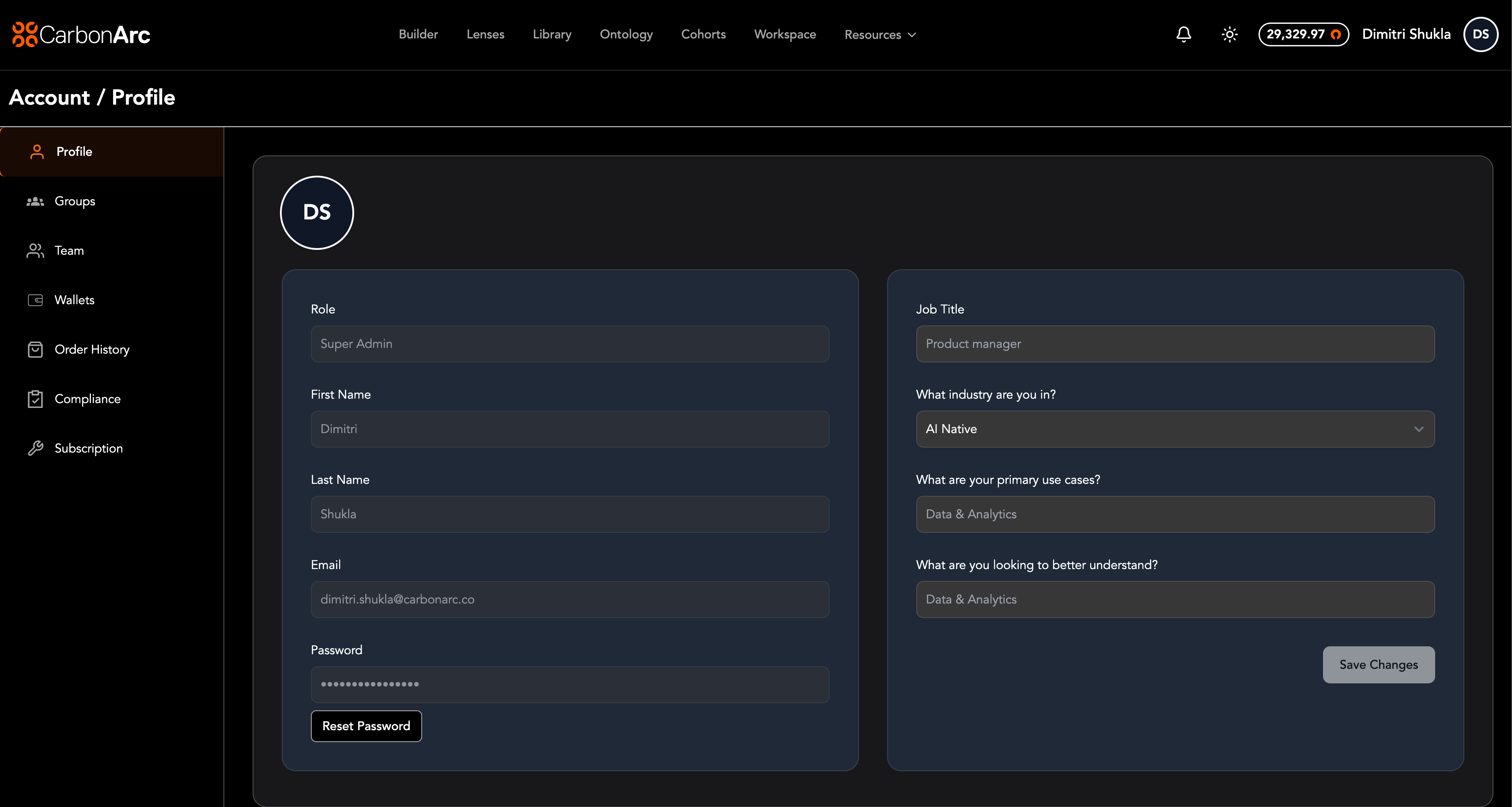 - Subscribe to marketing emails — Toggle to opt in or out of receiving marketing communications from Carbon Arc.