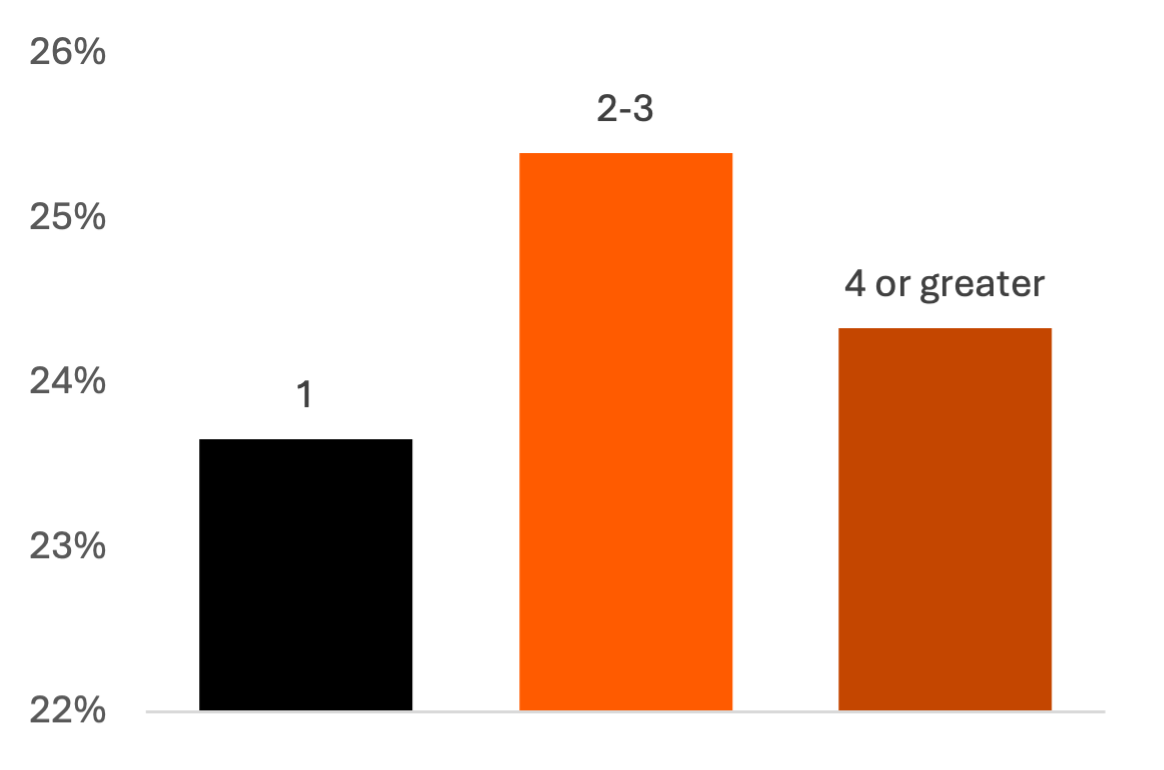 ~25% of both SMB jobs and employee dollars earned lie within roles classified as most at-risk from AI substitution.