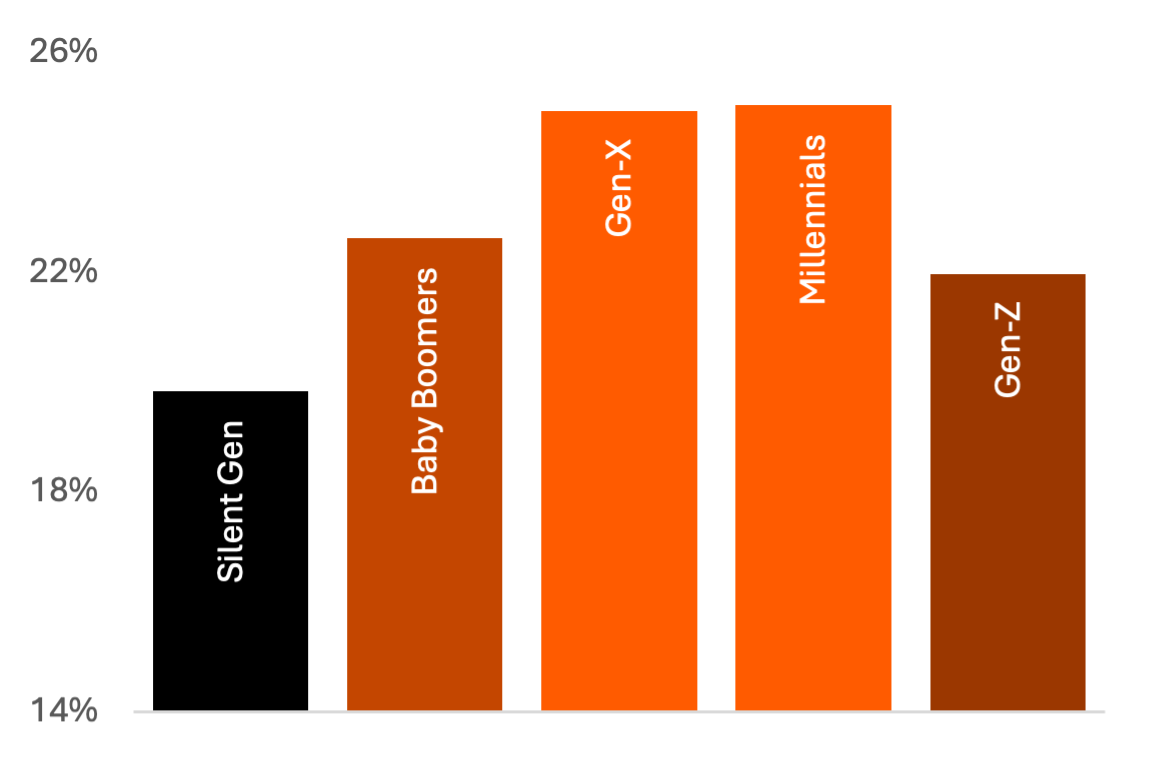 Balance sheets of Gen-X and Millennials are currently most at-risk, but the dollars at-risk are likely more tied to task embeddedness than age, meaning Gen Z is not immune as they expect to progress.