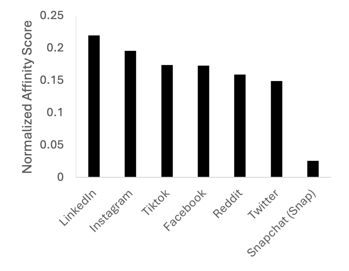 Web affinity further suggests a bias towards professional, high-income consumers. Williams-Sonoma web visitors have a greater affinity for LinkedIn than for other social media networks and are more likely to subscribe to smaller or less-popular streaming services like Apple TV and Peacock. They also skew towards trendier social media platforms like Instagram and TikTok compared to the average American.