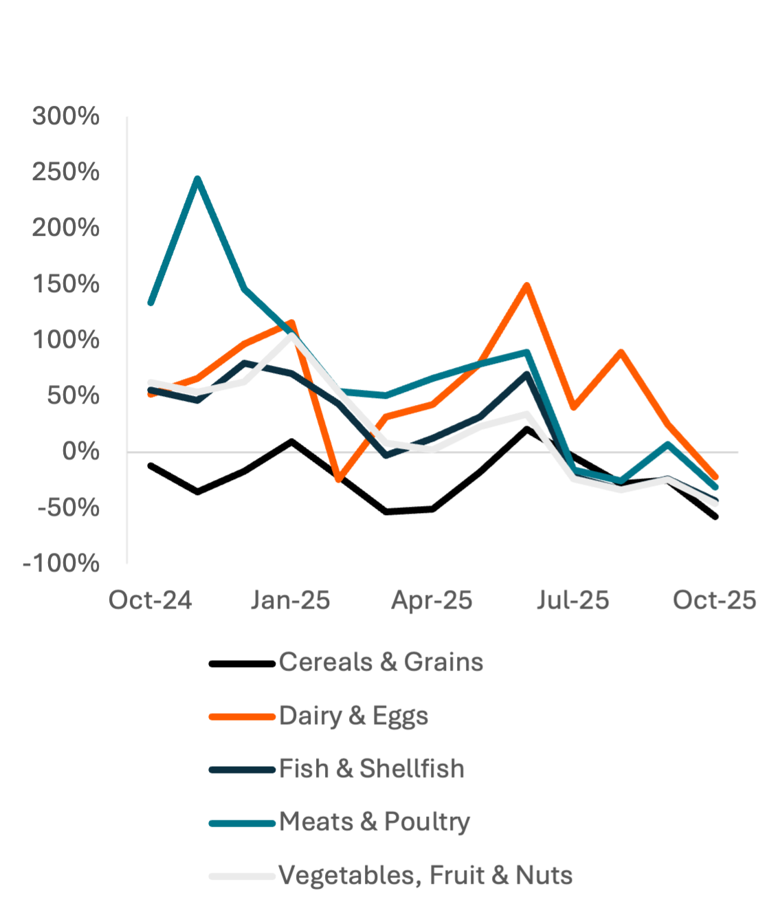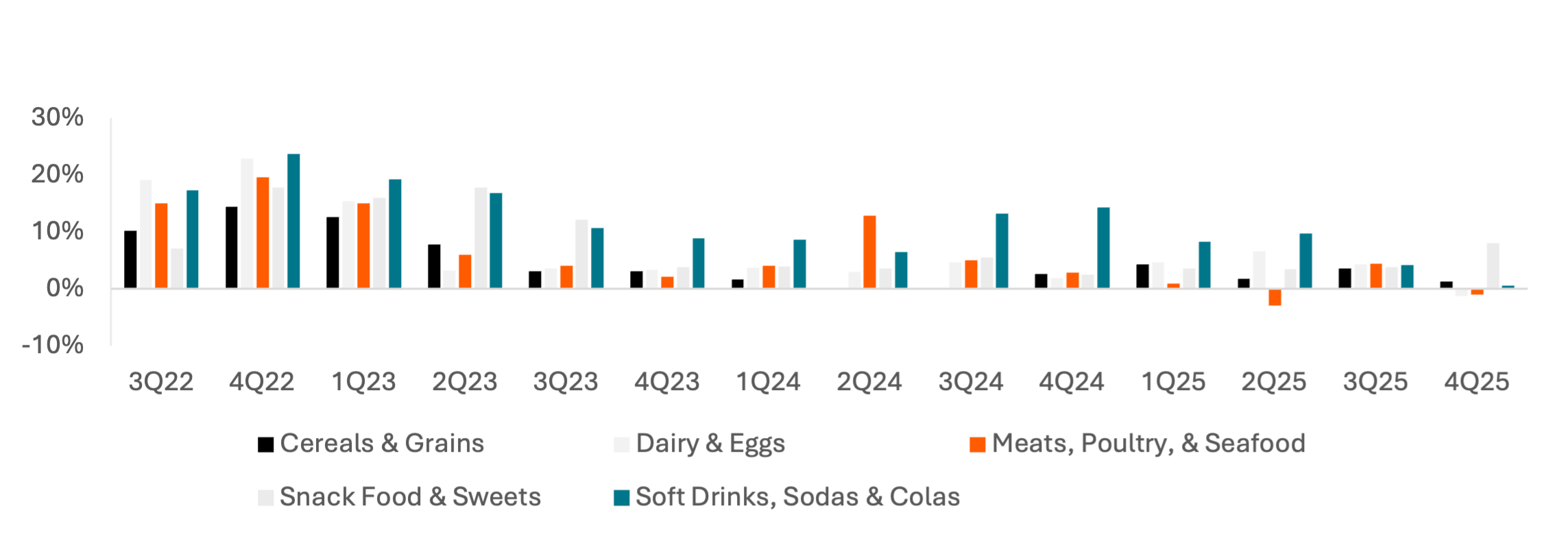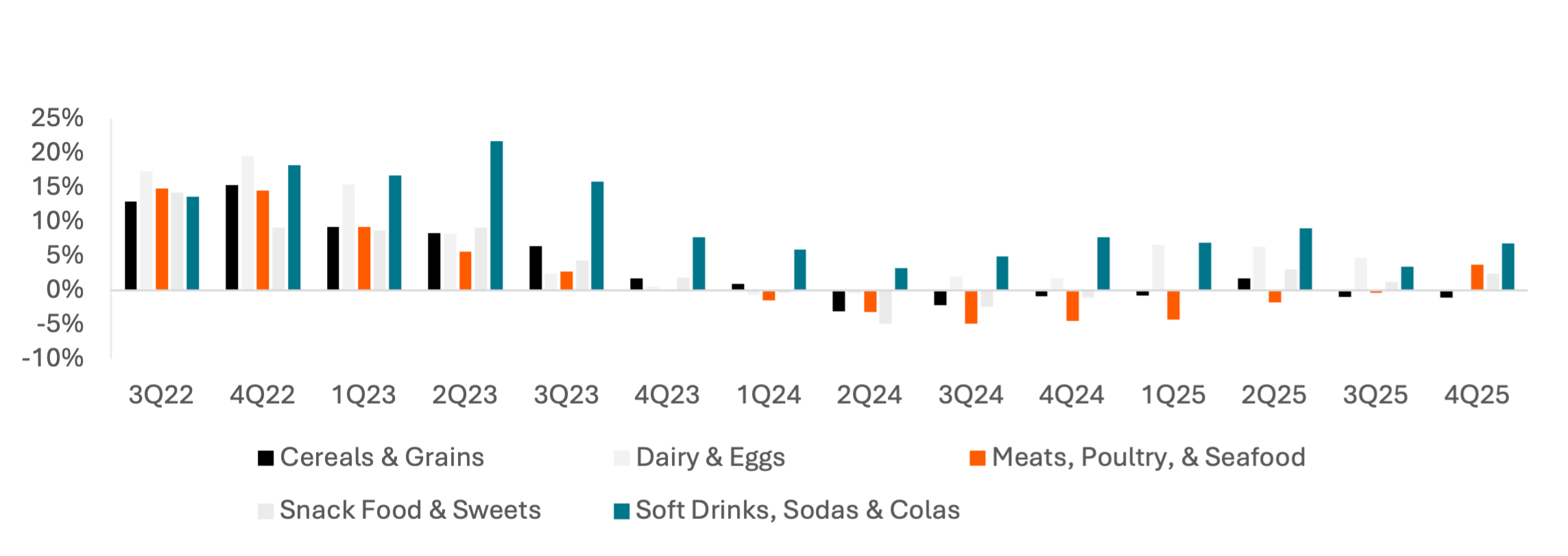 In Cereals & Grains and Snack Food & Sweets, consumers are trading down, lowering the average price of items purchased. Consumers buying larger snack food items in 2025, reversing trends from 2023 and 2024 may be a contrarian signal to the rise of GLP-1s or a shift to healthier and more-expensive brands.